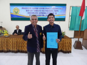 Dekan FMIPA Universitas Jember juga memberikan penghargaan kepada lulusan berprestasi Program Pasca Sarjana periode VI ini yang diraih Mohammad Zulfi, S.Si. (161820101011) dengan Indeks Prestasi Kumulatif (IPK) 3,93 dan lama studi 1 tahun 7 bulan 20 hari dari Program Studi Magister Matematika.