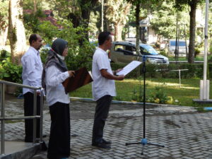 Civitas akademika FMIPA Universitas Jember melaksanakan apel pagi pertama setelah cuti bersama Hari Raya Idul Fitri 1443 H (9/5). Drs. Achmad Sjaifullah, M.Sc., Ph.D. Dekan FMIPA UNEJ sebagai pembina apel mengucapkan selamat lebaran kepada seluruh peserta apel. “Segenap pimpinan FMIPA mengucapkan minal aidzin wal faidzin, mohon maaf lahir batin kepada seluruh warga FMIPA” ucapnya.