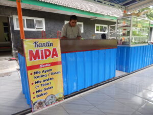 Setelah beberapa waktu mengalami mati suri, Kantin FMIPA kembali dibuka (5/6). “Per hari ini, dibuka kembali kantin FMIPA dengan tempat dan suasana yang baru,” ungkap Purwatiningsih, S.Si., M.Si., Ph.D. Wakil Dekan II FMIPA UNEJ pada sambutannya di apel senin pagi. Kantin baru berada di sisi timur Masjid FMIPA dan gedung ORMAWA. Kantin dibuat terbuka agar sirkulasi udara terjaga. “Disisi dalam yang terhubung gedung ORMAWA tersedia juga lapak minuman yang merupakan perluasan dari ruang sebelumnya,” lanjutnya.