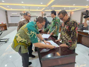Langkah strategis untuk mewujudkan akuntabilitas dan kolaborasi melalui penandatanganan perjanjian kinerja Universitas Jember 2025. Penandatanganan oleh Rektor Universitas Jember Dr. Iwan Taruna, M.Eng., IPM dan Dekan FMIPA UNEJ Prof. Drs. Dafik, M.Sc., Ph.D. bersama para Dekan lain, Kepala Lembaga, dan Kepala Unit Penunjang Akademik (UPA) di lingkungan UNEJ. “Kita akan mewujudkan dengan penuh tanggung jawab target kinerja yang tertuang dalam naskah perjanjian,” ujar Prof. Dafik. Dikatakan, target kinerja berdasarkan Rencana Strategis Bisnis Universitas Jember tahun 2025-2029 dengan Indikator Kinerja Utama (IKU) dan juga Indikator Kinerja Kegiatan (IKK).