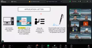 In his presentation, Noersjam emphasized that career readiness is determined not only by academic ability, but also by soft skills and behavioral competencies that demonstrate a candidate’s professionalism. He explained that initial documents, such as the application letter and curriculum vitae (CV), must be neatly structured, concise, and error-free to demonstrate the applicant’s seriousness in participating in the selection process. “The application letter must be concise, to the point, and error-free. The candidate’s seriousness is evident from the initial documents they submit,” he said.