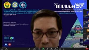In First Plenary Session guided by Dra. Arry Yuariatun Nurhayati, M.Si. from the University of Jember presented first speaker, Dr. M.V. Reddy from Canada with the presentation Recent Advances in Nanomaterials and Its Energy Storage and Conversion Applications, Second speaker is Prof. Tamio Oguchi from Japan with presentation Crystal Structure Classification by Similarity, continued Prof. Dr. Eng. Khairurrijal as third speaker from ITB Indonesia with a presentation entitled Polyvinyl Alcohol Hydrogels as Controlled-Release Materials for Indonesian Red Betel or Guava Leaves Extracts and the first session closed with a discussion with ICPIAM 2021 participants.