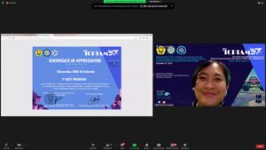 After rest, presenter enter the room of breakout Zoom Meeting. Room 1 Material Science and Engineering moderated by Drs. Imam Rofi’I, M.Sc. followed by 11 presenters. Room 2 Computational Science and Engineering with Dr. Lutfi Rohman, S.Si., M.Sc. followed by 9 presenters, Room 3 Microwave Communications and Propagation, RADAR, Wireless Antenna with moderator Bowo Eko Cahyono, S.Si., M.Si., Ph.D. followed by 8 presenters. Room 4 Biophysics, Medical Physics, and Biotechnology with moderator Endhah Purwandari, S.Si., M.Sc. followed by 10 presenters. Room 5 Theoretical and Nuclear Reactor Physics moderated by Dr. Ratna Dewi Syarifah S.Pd., M.Sc. followed by 7 presenters and the last is Room 6 Geophysics, Environmental Physics, Remote Sensing and GIS, Earth Sciences, Imaging and Image Processing with moderator Wenny Maulina, S.Si., M.Si. followed by 9 presenters. The 3rd ICPIAM 2021 agenda was closed with a Closing Ceremony by announcing the Best Presenter. The Best Presenter winners are: