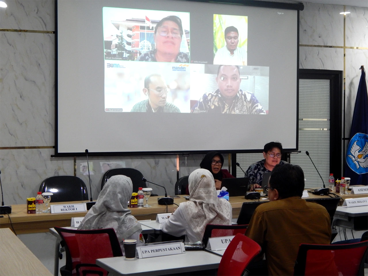 The Lembaga Akreditasi Mandiri Sains Alam dan Ilmu Formal (LAMSAMA) Team held a field assessment of the accreditation of the Undergraduate Mathematics Study Program, Faculty of Mathematics and Natural Sciences, University of Jember. Rector of University of Jember Dr. Ir. Iwan Taruna, M.Eng., IPM., ASEAN Eng. and Vice Rector of UNEJ for Academic Affairs Prof. Drs. Slamin, M.Comp.Sc., Ph.D. together with the Dean of FMIPA UNEJ Prof. Drs. Dafik, M.Sc., Ph.D. accompanied the assessor team in the opening ceremony of the field assessment (16-17/6). The assessor team consisted of Prof. Dr. Sri Wahyuni, S.U. from Gadjah Mada University and Prof. Alhadi Bustamam, M.Kom., Ph.D. from the Universitas Indonesia.