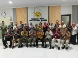 The chancellor, senate chair, vice chancellors, and head of Bureau II visited all faculties, institutions, and Academic Support Units (UPA) on the Tegalboto campus, one of which was the Faculty of Mathematics and Natural Sciences (9/4). The Dean of FMIPA UNEJ, Prof. Drs. Dafik, M.Sc., Ph.D., along with the leadership of FMIPA, welcomed the Chancellor in the meeting room of the FMIPA dean’s office building. The Chancellor of UNEJ said Halal bi Halal with lecturers and education staff in each work unit to see firsthand the condition of each work unit. Lecture activities have been running, especially practical courses that require students to be on campus. Likewise with academic activities and other supporting activities.