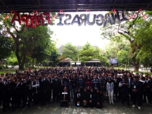 The Vice Dean III of the Faculty of Mathematics and Natural Sciences encouraged all new students to pursue a bright future by continuing to hone their knowledge at FMIPA. “Your future must be bright. Learning and learning are the key. If you have any difficulties, don’t hesitate to ask your seniors. We, the lecturers and administrative staff, are ready to help,” he concluded. In the second week, new students received material on the UKM at FMIPA. Each UKM presented its activities and achievements. “Each ORMAWA and UKM of the Faculty of Mathematics and Natural Sciences was given the opportunity to attract new students to join,” said Ilham, BEMF MIPA. PALAPA organized a mini camping trip and flying fox, the UKM SPORA played basketball on the FMIPA field, the IONS introduced archery, and the UKMS TITIK held a mini performance in the FMIPA ORMAWA building.