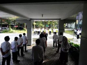 The academic community of the Faculty of Mathematics and Natural Sciences, University of Jember, held their first morning roll call after the joint leave for Eid al-Fitr 1447 H (April 6). Prof. Dra. Hari Sulistiyowati, M.Sc., Ph.D., Vice Dean I of the Faculty of Mathematics and Natural Sciences, University of Jember, led the roll call, conveying a message to prepare for promotions and functional positions. “In accordance with the direction of the UNEJ leadership, lecturers and education staff are expected to actively process promotions and check the completeness of documents through the FMIPA personnel office,” she said. For lecturers’ functional promotions, as instructed by the Ministry of Education, Science, and Technology, they should immediately complete the requirements by checking the Ministry’s sister website.