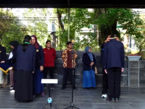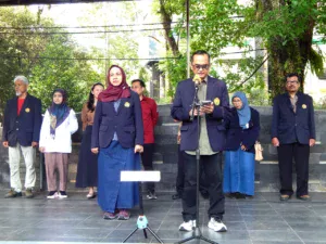 Located in the parking lot of FMIPA UNEJ, Prof. Dr. Edy Supriyanto, S.Si., M.Si. officially opened the implementation of the Pembinaan dan Pengembangan Mahasiswa Baru (PPMB) FMIPA University of Jember in 2025 (30/8). “Welcome to FMIPA, being a student is not just to study but to have big dreams, dare to change the future,” he began. Wadek III FMIPA UNEJ said students are not just taught knowledge alone, but build character, train leadership, and grow the courage to dream sky-high. “You are born in an era full of challenges, then those who are passionate, have vision and work hard will stand at the front facing the world,” he messaged.