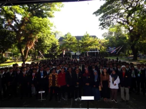 The PPMB 2025 committee also held an inauguration to showcase the talents of the new students of each department. “The inauguration will showcase the talent and courage of students to show their abilities, achievements and compactness of all participants of PPMB 2025,” said the PPMB 2025 committee. Vice Dean III FMIPA Prof. Dr. Edy Supriyanto, S.Si., M.Si. advised the new students of FMIPA to follow PPMB 2025 well and keep healthy. “We the committee, so as to arrange the schedule of PPMB 2025 so as not to interfere with lectures and hope students can always be healthy and cheerful to attend the event,” he concluded.