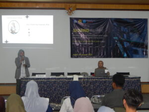 Pemateri selanjutnya Dewi Riskha Nurmalasari, alumi Jurusan Biologi tahun 2007 yang kini menjadi salah satu pengajar di Akademi Farmasi Jember. “Lika-liku perjuangan saya hingga menjadi dosen mungkin hampir sama dengan Kak Fani, melalui banyak tantangan tapi tetap semangat dalam menjalani,” cerita Dewi yang setelah studi masih tetap menjalani hubungan baik dengan dosen Biologi FMIPA hingga disarankan untuk studi lanjut di Bioteknologi-Farmasi ITB.