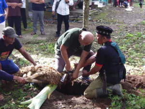 JULEHA adalah Juru Sembelih Sapi Halal yang memiliki keahlian dan dedikasi pada pemotongan hewan juga memastikan kehalalan daging. Dengan satu tarikan nafas, hentakan Prof. Bayu berhasil memotong sapi kurban. Setelah dibacakan shohibul kurban oleh Dr. Bambang Piluharto selaku perwakilan takmir masjid Baitul Ilmi. Selanjutnya pemotongan kurban kambing dengan didampingi Prof. Bayu. Tidak membutuhkan waktu lama, proses pemotongan sapi dan kambing selesai dilaksanakan. Panitia kurban dengan perlengkapan segera bekerja bersama memilah daging kurban untuk selanjutnya didistribusikan. Wakil Dekan I, II, dan III FMIPA didampingi Kabag Umum FMIPA turun langsung dalam proses tersebut.