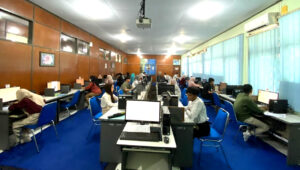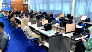 FMIPA UNEJ menjadi salah satu lokasi bersama 20 lokasi ujian lain dengan 30 ruang ujian dan 955 perangkat komputer yang tersebar di Kampus Tegalboto untuk melayani 13.403 peserta UTBK SNBT. Sebelum pelaksanaan, IT Ruang dari laboratorium matematika melakukan instalasi aplikasi UTBK didampingi tim dari UPA TIK. Selanjutnya dilakukan asesmen koneksi jaringan dipandu oleh admin server UTBK SNBT UNEJ. “Setelah instalasi dan asesmen, IT Ruang kami bersama UPA TIK melakukan ujicoba UTBK secara nasional sebanyak dua kali, untuk memastikan kesiapan pelaksanaan,” ungkap Wadek II FMIPA UNEJ.
