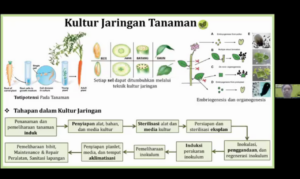 Su’udi juga memaparkan proses sterilisasi, kontaminasi, penggunaan media, zat pengatur tumbuh, hingga tahapan inokulasi dan penggandaan inokulun. “Perlu diperhatikan sterilisasi ruang, alat bahan, pemilihan dan pengambilan eksplan, sterilisasi luar dalam dan yang terakhir inokulasi itu sendiri” jelasnya. Diharapkan dengan materi yang disampaikan, peserta bisa memahami kultur jaringan dan siap untuk mengikuti uji kompetensi. Ujian yang sama pernah dilakukan oleh TUK Pertanian Jurusan Biologi FMIPA UNEJ pada beberapa waktu yang lalu akan tetapi secara luring dengan protokol kesehatan yang ketat.
