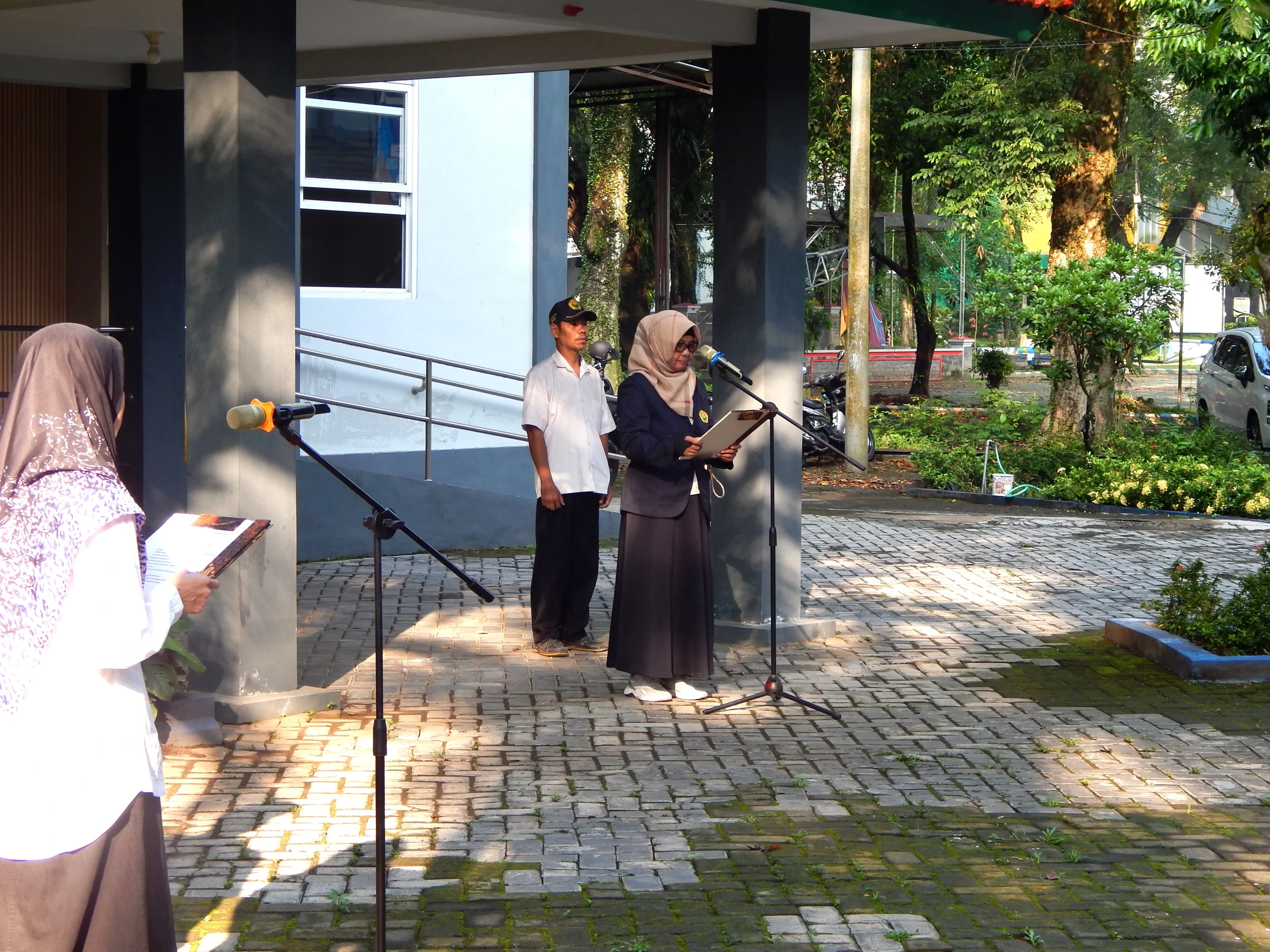 Civitas akademika FMIPA Universitas Jember melaksanakan apel pagi pertama setelah pelaksanaan cuti bersama Hari Raya Idul Fitri 1446 H (14/4). Prof. Dra. Hari Sulistiyowati, M.Sc., Ph.D. Wakil Dekan I Fakultas MIPA Universitas Jember sebagai pembina apel dalam amanat sampaikan apresiasi kepada dosen dan tenaga kependidikan yang telah selesaikan e-SKP. “Saya berikan apresiasi kepada dosen DT dan tenga kependidikan yang minggu kemarin fokus selesaikan dengan baik e-SKP, dengan waktu yang sangat singkat,” ungkapnya. Dikatakan meski surat edaran beberapa hari menjelang lebaran, karena data telah maka laporan e-SKP FMIPA dapat diselesaikan dengan cepat dan baik.