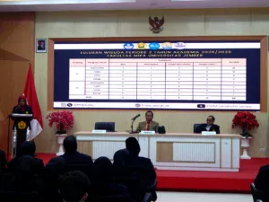 FMIPA UNEJ selenggarakan Yudisium Pascasarjana (S2) ke-79 dan Sarjana ke-111 Fakultas MIPA Universitas Jember Periode 2 Tahun Akademik 2025/2026 (19/9). Bertempat di Auditorium Gedung Kewirausahaan Universitas Jember. Pada pidato yudisium, Dekan FMIPA UNEJ Prof. Drs. Dafik, M.Sc., Ph.D. mengajakan yudisi segera bersiap bersaing dengan kompetitor para pencari kerja. “Anda semua harus siap, karena kompetitor sangat banyak, maka tidak hanya IPK, tapi dibutuhkan kreatifitas sebagai penentu masa depan,” ujarnya. Dengan kreatifitas bisa ciptakan peluang membuka usaha sendiri, berwiraswasta tanpa harus bergantung dengan lowongan pekerjaan.